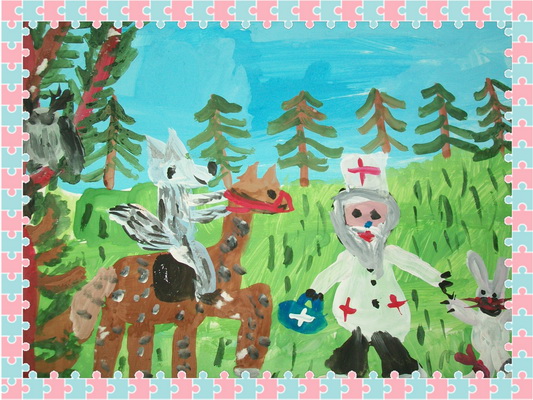 Третье место -Доктор Айболит Пиндич Виолетта, педагог Карпович Любовь Ивановна. Детская художественная школа, г.Норильск
