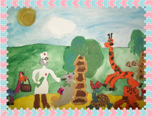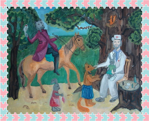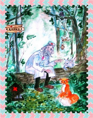 Третье место -Доктор Айболит Настя Дребезгова, педагог Лепешенкова Светлана Викторовна. Детская художественная школа, г.Щёлково