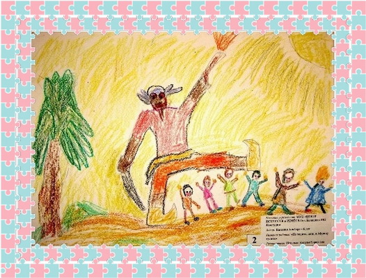 Второе место -Бармалей в брюхе крокодила Сидоров Дима, педагог Михненков Владимир Николаевич. Художественная школа, г.Протвино