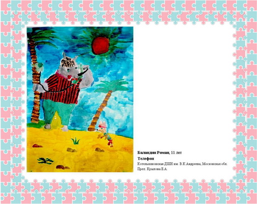 Третье место -Зазвонил телефон Ледова Даша, педагог Гвоздюк Владимир Еремеевич. Художественная школа, г.Протвино