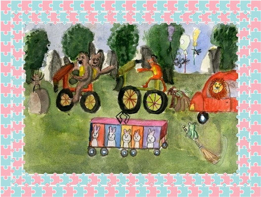 Третье место -Зайчики на трамвайчике Дзюба Валерия, педагог Литвинова Ирина Александровна. Детская художественная школа "им. Н.В.Овечкина", г.Новошахтинск
