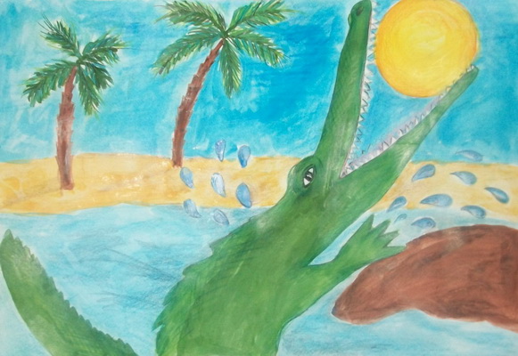 Третье место -Крокодил солнце в небо возвратил! Якимова Дарья, педагог Чухарева Анжелика Витальевна. Детская школа искусств, г.Красноуфимск