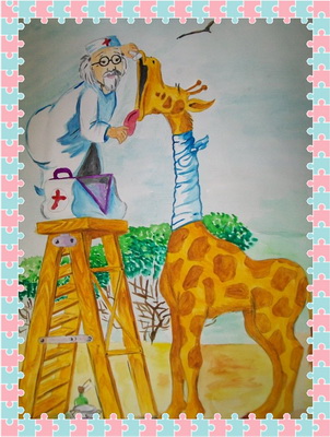 Третье место -Добрый доктор Айболит… Денисова Даша, педагог Богомолова Ирина Васильевна. Детская художественная школа, Смоленская область, г.Рославль