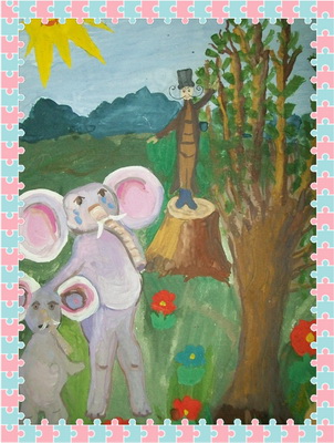 Победитель -Топтыгин и луна Климова Таня, педагог Гуцунаева Ольга Эдуардовна. Дворец детского творчества, Республика Северная Осетия - Алания, г.Владикавказ