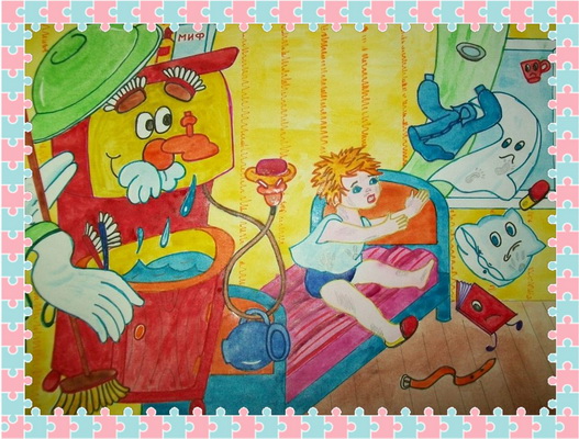 Второе место -Мойдодыр спешит на помощь Изюмов Данил, соавтор Борознина Татьяна Михайловна, педагог Сарипова Наталья Борисовна. Средняя общеобразовательная школа, Волгоградская область, п.Комсомольский