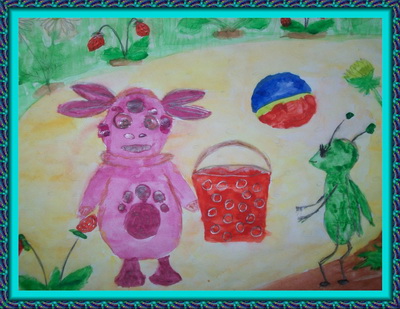 Третье место -Лунтик на прогулке Степанова Татьяна, Детский сад №50 "Непоседы", г. Новочебоксарск