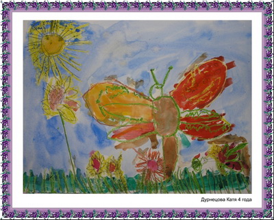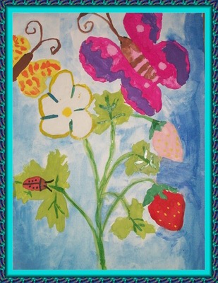 Второе место -Бабочки на клубнике Карпичева Полина, Детский сад №45 "Солнышко", г. Мытищи