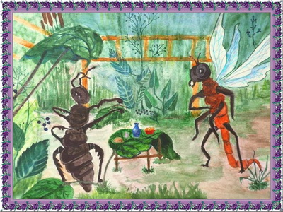 Второе место -Стрекоза и муравей Папырина Вероника, Детская школа искусств "им. В.К.Андреева", г. Котельники