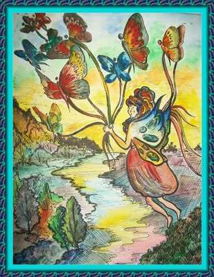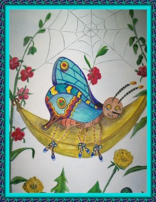 Второе место -Бабочка в цветах Новикова Евгения, Детская художественная школа "им. А.А.Бузовкина"