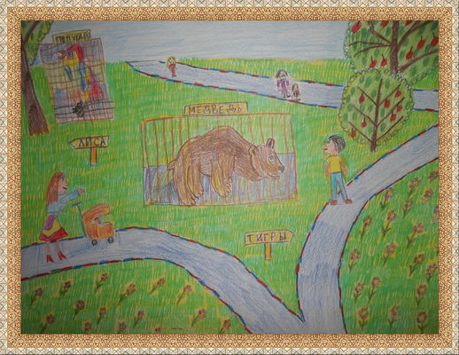 Третье место -Прогулка в зоопарке Малинова Женя, педагог Тихонова Наталья Алексеевна. Центр детского творчества "Искатель", Московская область, г.Лыткарино
