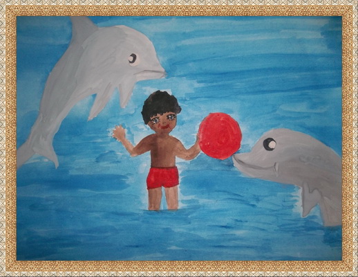 Третье место -Мои друзья дельфины Кулик Олег, педагог Алымова Елена Петровна. Дом детского творчества №1 "им. В.Волошиной", Московская область, г.Наро-Фоминск