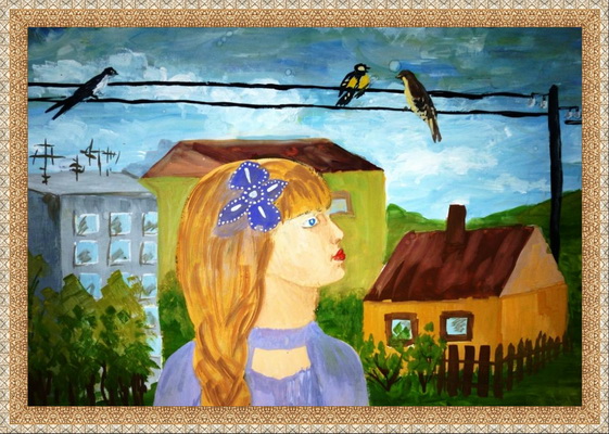 Второе место -В деревне Петренко Анастасия, педагог Прокопенко Любовь Викторовна. Художественная школа "Художественная школа в составе "Гимназия №7"", Оренбургская область, г.Оренбург