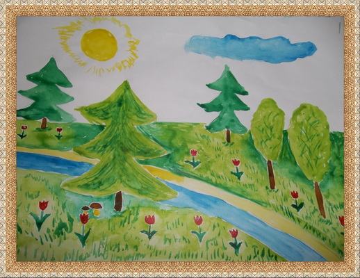 Второе место -Красота летней природы у реки Кама Исламова Лиана, педагог Ризванова Сария Габдулхаковна. Детский сад №49 "Росинка", Республика Татарстан, г.Нижнекамск