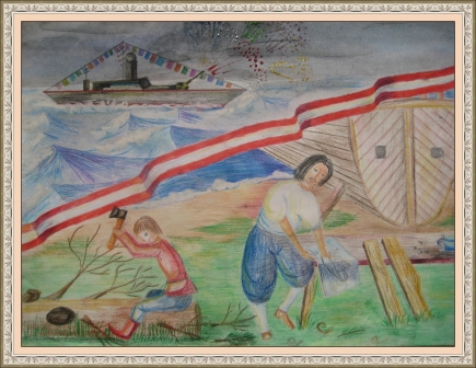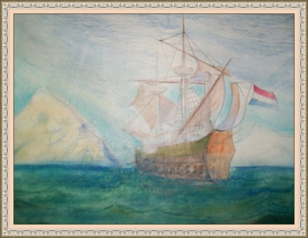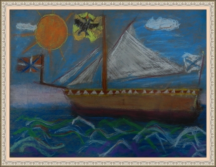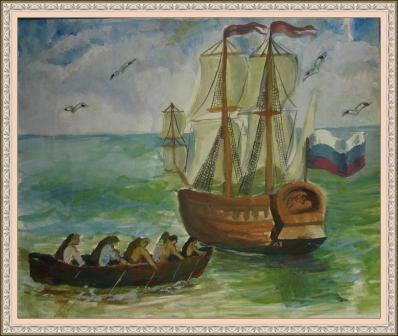 Второе место -Экспедиция Витуса Беринга на "Святом павле" Шевченко Ульяна, педагог Шикалова Татьяна Ивановна. Детская школа искусств, г.Ступино