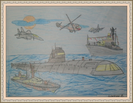 Второе место -На страже морских границ Ласкин Андрей, педагог Саханова Ольга Васильевна. Средняя общеобразовательная школа №3, г.Жуковский