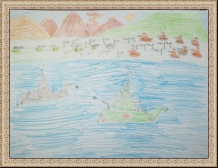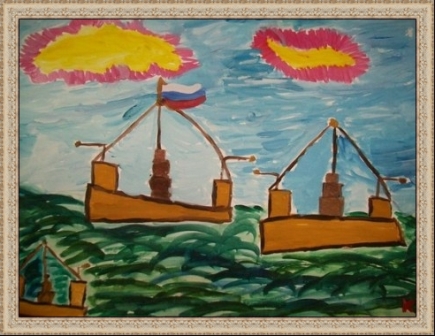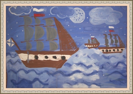 Третье место -Флот плывет к родной земле… Королева Алина, педагог Гайнанова Лидия Флоридовна. Детский сад №27 "Росинка", г.Ступино