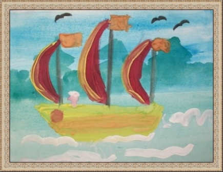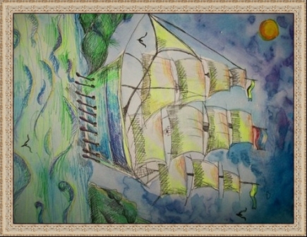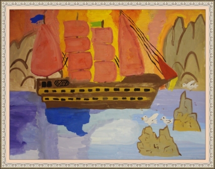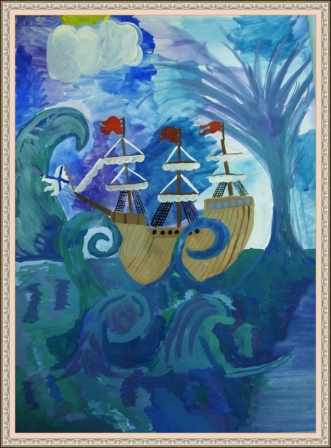 Третье место -Корабль и дельфины Столярова Алена, педагог Махова Елена Александровна. Средняя общеобразовательная школа №12, г.Жуковский