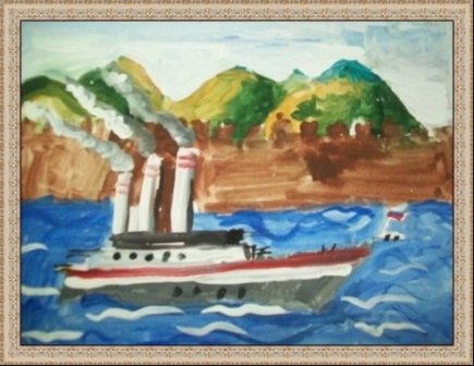Третье место -Пароход на море Щербакова Арина, педагог Исхакова Ольга Николаевна. Детский сад №45 "Сказка", п.Развилка