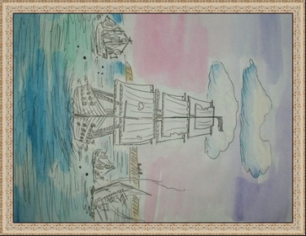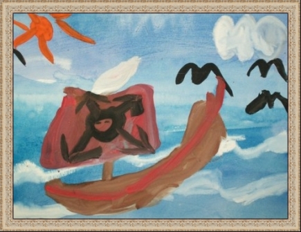 Третье место -Чайки встречают корабль Соколова Маша, педагог Клюшникова Ольга Алексеевна. Художественная школа, г.Протвино