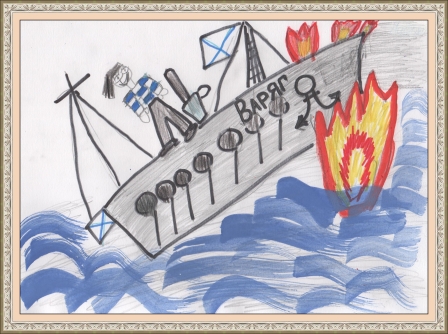 Третье место -Гибель "Варяга" Настя Блинаева, педагог Горячева Татьяна Юрьевна. Детский сад №19, г.Подольск