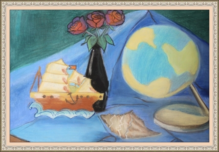 Победитель -Натюрморт «мечты о дальнем плаваньи» Митенкова Маша, педагог Панова Е. С.. Детская школа искусств "Дети синей птицы", п.Ерино