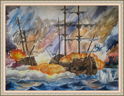 Второе место -Сражение при Чесме Ковалёва Евгения, педагог Михайлова Галина Витальевна. Лицей "Школа искусств", г.Талдом