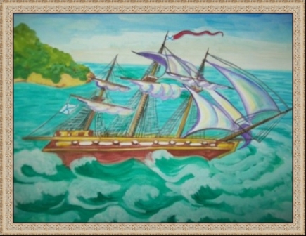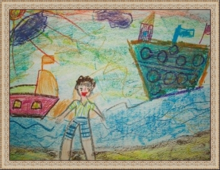 Третье место -Кругосветное плавание фрегата "Крейсер" Фоменко Ксения, педагог Ленькова Алла Николаевна. Детская художественная школа, г.Батайск