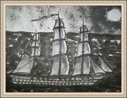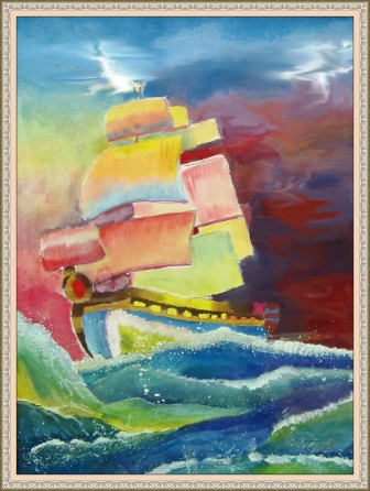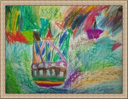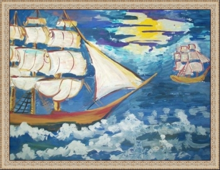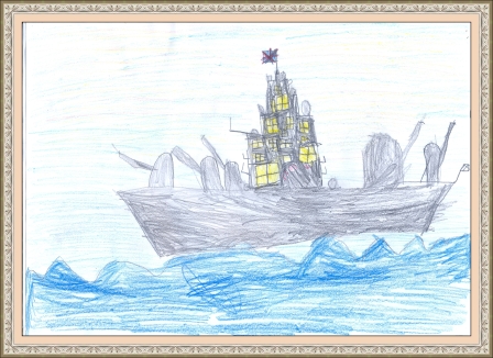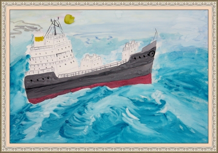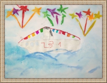 Третье место -Корабль в море Дёмина Маргарита, педагог Сарапова Ольга Ивановна. Детский сад №26, Санкт-Петербург,