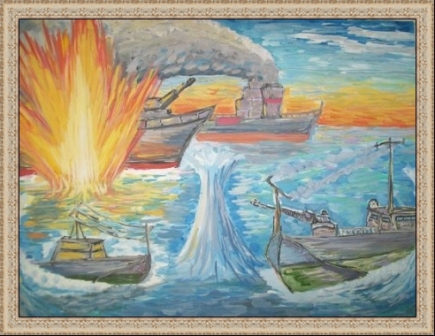 Второе место -Морская атака Шафрановский Сергей, педагог Ушанева Ирина Евгеньевна. Детская художественная школа "им. Н.В.Овечкина", Ростовская область, г.Новошахтинск