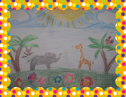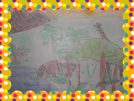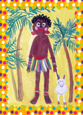 Второе место -Где-то в жаркой Африке Халилиан Анита, педагог Хлыбова Галина Вячеславовна. Начальная школа-детский сад №106 "Ёлочка", Астраханская область, г.Астрахань