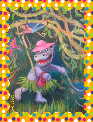 Второе место -В джунглях Михалевич Олеся, педагог Баранникова Ольга Юрьевна. Детская художественная школа №4 "им. П.И.Котова", Астраханская область, г.Ахтубинск