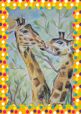 Второе место -Влюбленные жирафы. Илихина Арина, педагог Тучина Наталия Владимировна. Детская школа искусств №2, Астраханская область, г.Астрахань