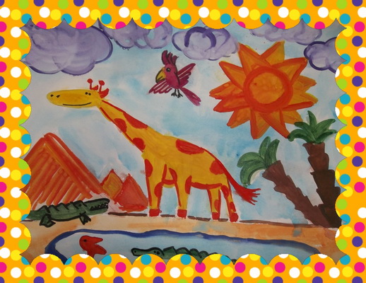 Третье место -Гуляющий по Африке жираф. Плясунова Карина, педагог Зощенко-Осман Ольга Александровна. Детский сад №2434, г.Москва