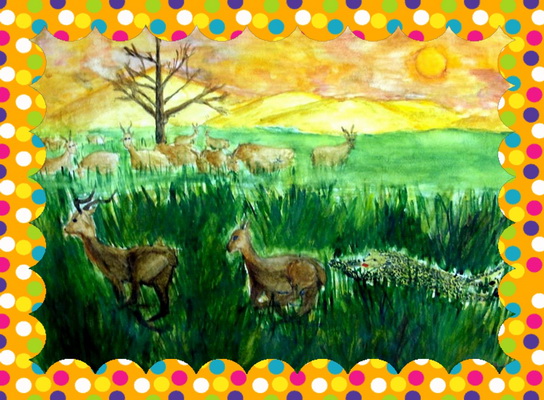 Победитель -Животные у водопоя. Зылева Ангелина, педагог Митюшкина Елена Анатольевна. Детский сад №1524, г.Москва