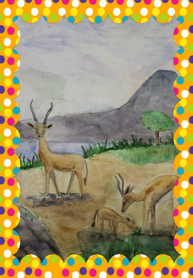 Второе место -Антилопы на водопое Идиятуллина Айша, педагог Лопуха Елена Ивановна. Детская школа искусств "Вдохновение", г.Москва