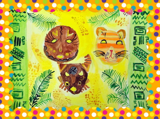 Второе место -Африканские маски Клементьева Вера, педагог Измайлова Р.Ш.. Детская школа искусств "Вдохновение", г.Москва