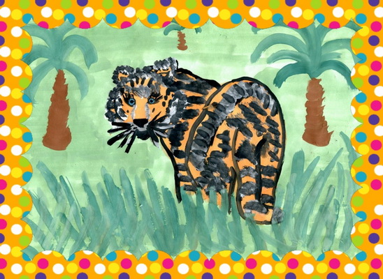 Третье место -Тигр на охоте Рождественский Валентин, педагог Пикулина Татьяна Александровна. Детский сад №5, г.Москва