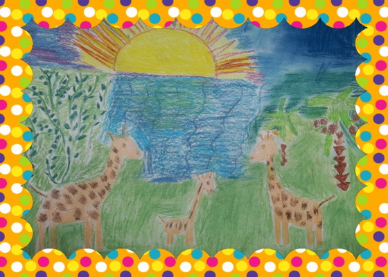 Второе место -Семья жирафов гуляют возле водопада Горбунов Захар, педагог Ефимова Ксения Андреевна. Центр развития ребенка №11, Пермский край, г.Кунгур