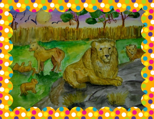 Победитель -Семья львов отдыхает в оазисе. Малышев Максим, педагог Тёплых Валентина Викторовна. Школа искусств, Пермский край, с.Вторые Ключики