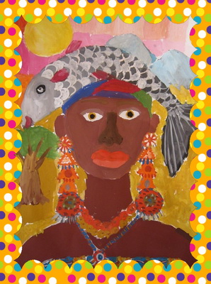 Второе место -Африканка с рыбой на голове Старикова Анастасия, педагог Русанова Ольга Александровна. Дом детского творчества "Искорка", Пермский край, г.Чайковский