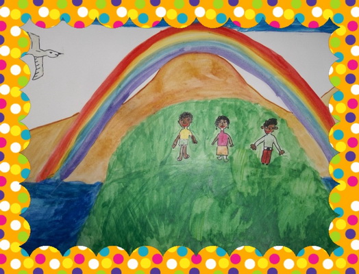 Второе место -Дружат дети жарких стран Воробьёва Варвара, педагог Неймышева Галина Павловна. Средняя общеобразовательная школа, Свердловская область, с.Коркинское