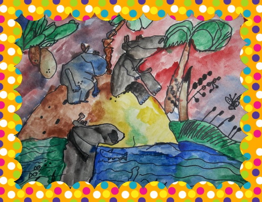Третье место -Бегемотики на отдыхе Нефедов Степан, педагог Захарова Анна Анатольевна. Детская школа искусств, Свердловская область, г.Красноуфимск