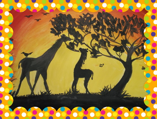 Победитель -Африканские жирафы. Ложкина Елена, педагог Степина Оксана Валентиновна. Детская школа искусств, Волгоградская область, г.Урюпинск