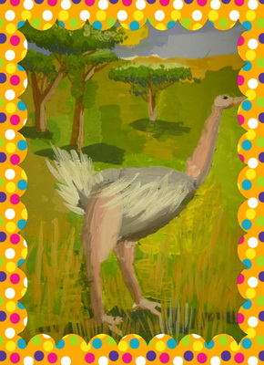 Второе место -Страус Якунина Полина, педагог Грищенко Екатерина Викторовна. Студия начального изобразительного искусства, Воронежская область, г.Воронеж