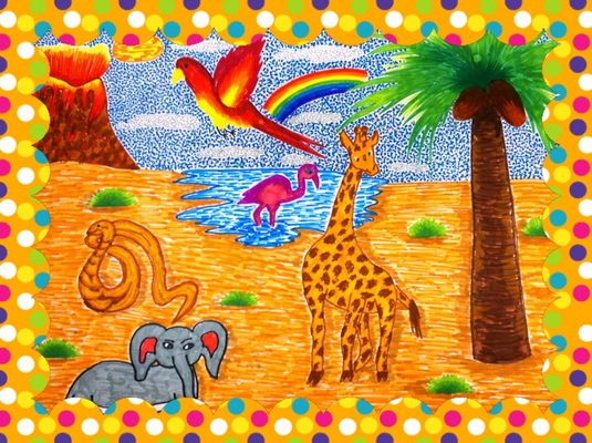 Третье место -Вот такие в Африке животные Гумерова Лена, педагог Сим Ольга Ендиновна. Детская школа искусств, Сахалинская область, г.Шахтерск