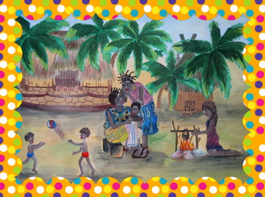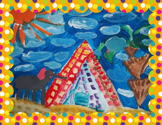 Третье место -Африканская деревня Дмитриенко Дарья, педагог Пивцаева Нэлла Алексеевна. Детская школа искусств №2, Ставропольский край, г.Изобильный