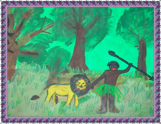 Победитель - Нападение на доисторического тигра Тихомирова Ольга. Средняя общеобразовательная школа № 2, г. Спас-Деменск
