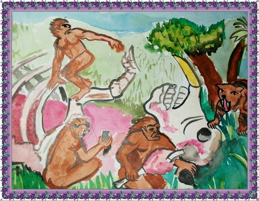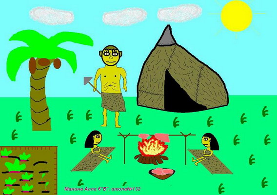 Второе место -Обед первобытного человека Чекмарев Владислав. Средняя общеобразовательная школа № 11, г. Зеленодольск