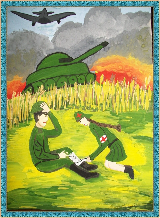 Третье место -Помощь раненному бойцу Насибуллина Лия, Детская школа искусств №13,"Художественное отделение",г.Набережные Челны