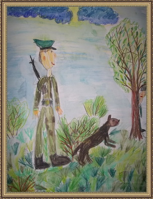 Третье место -Мы с Шариком охраняем границу Якимова Дарья, педагог Султанова Зарема Ашимжановна. Детский сад №140 , Красноярский край , г. Красноярск